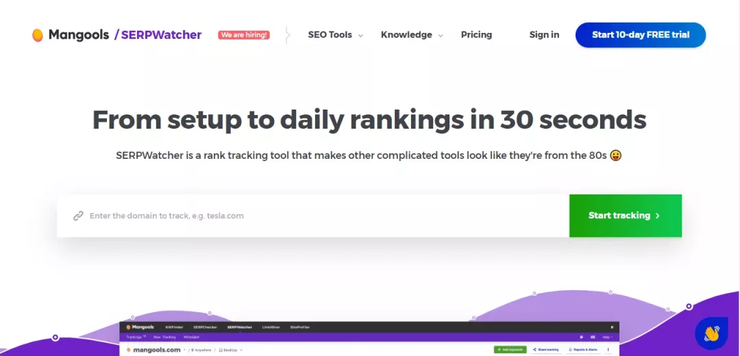 SERPWatcher 是一个简单易用的关键词排名查询工具,由 Mangools 公司创建,允许用户实时查看搜索引擎排名,以及一些特定关键词的排名。